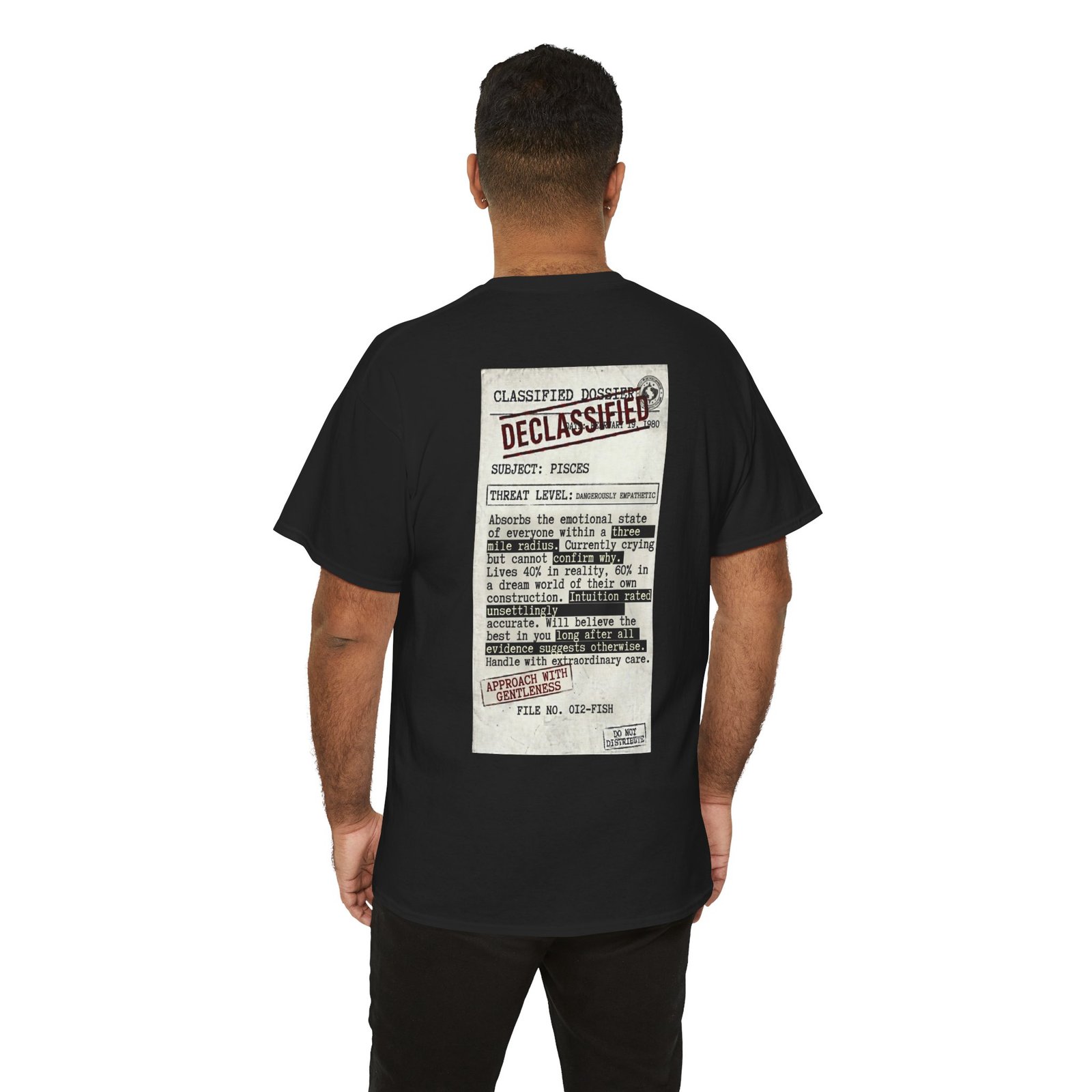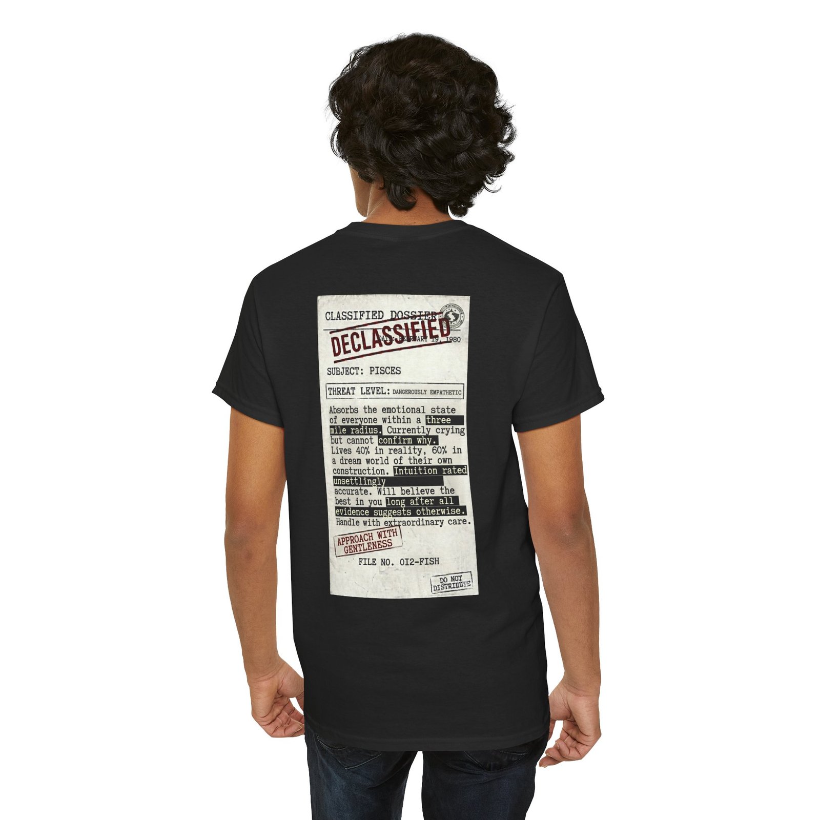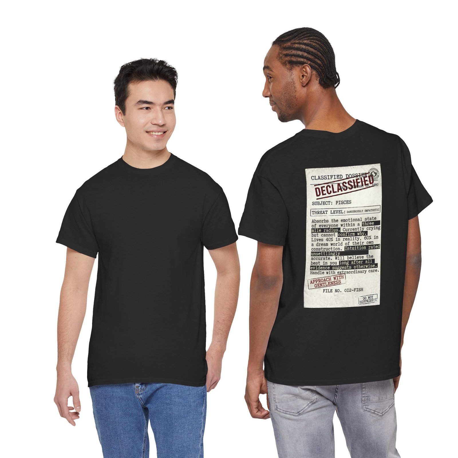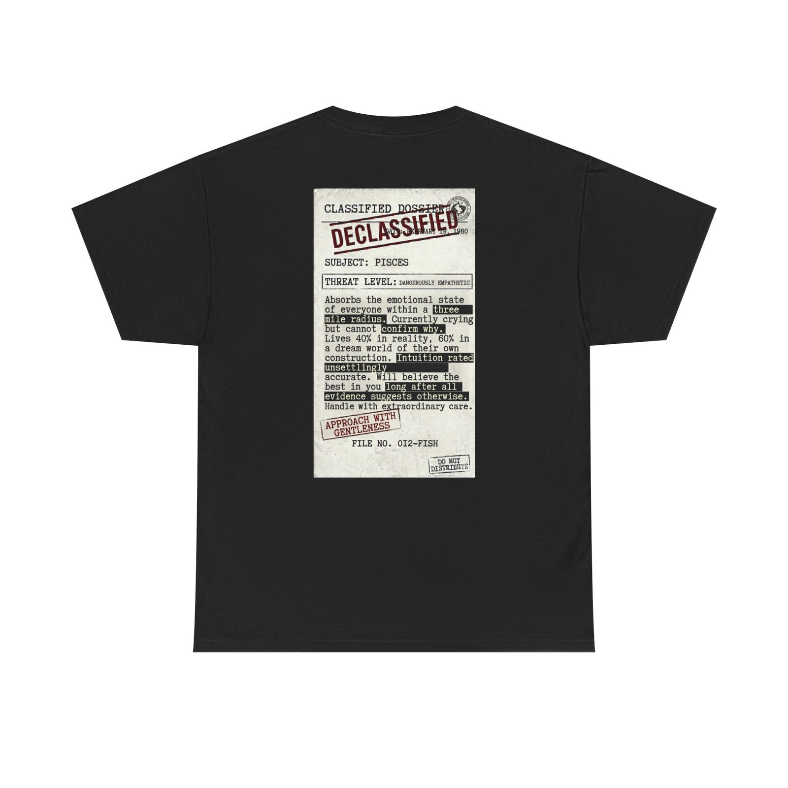 This classic tee brings a quiet, investigative energy to everyday wear. The soft, sturdy cotton holds a detailed declassified-document print on the back that looks lived-in β like a found file you can fold into your day. It sits boxy and relaxed at the shoulders, so the design reads clearly whether youβre moving through the city or lingering at a coffee shop. Wear it under a jacket or on its own; the neutral base color and subtle texture let the print take center stage without shouting. Thereβs a practical honesty to the construction β reinforced shoulders, a stable ribbed collar, and a tear-away label β so it stays comfortable and familiar long after the first wash.