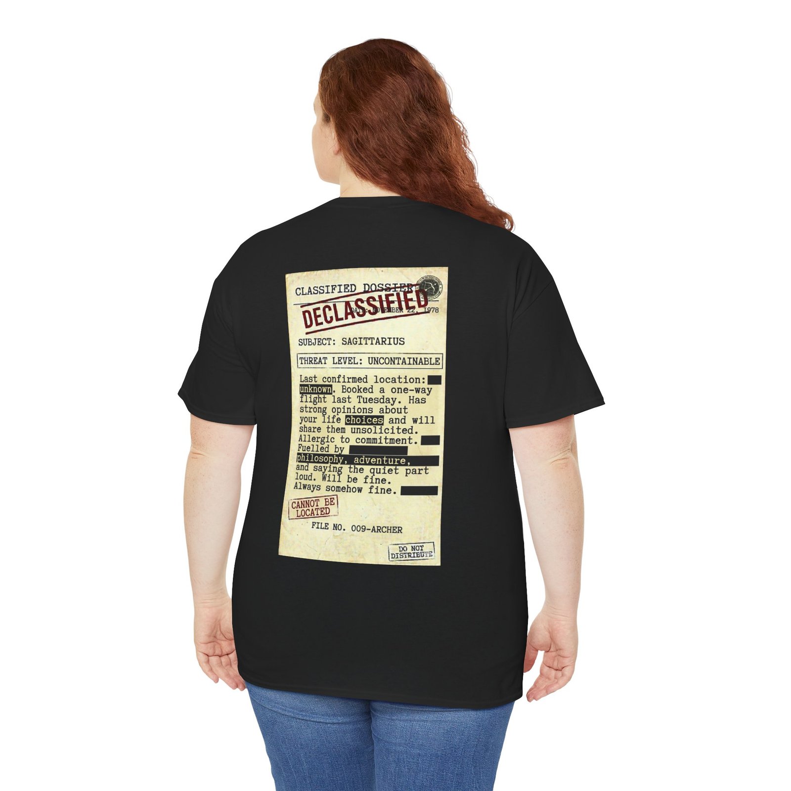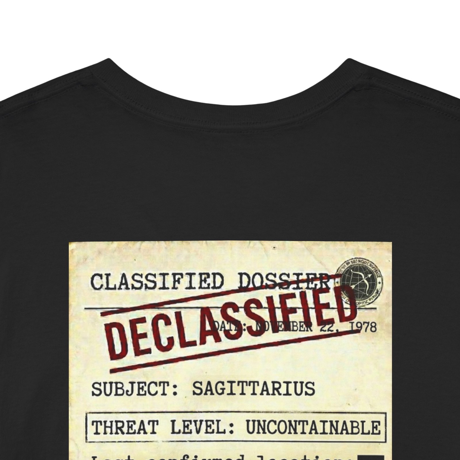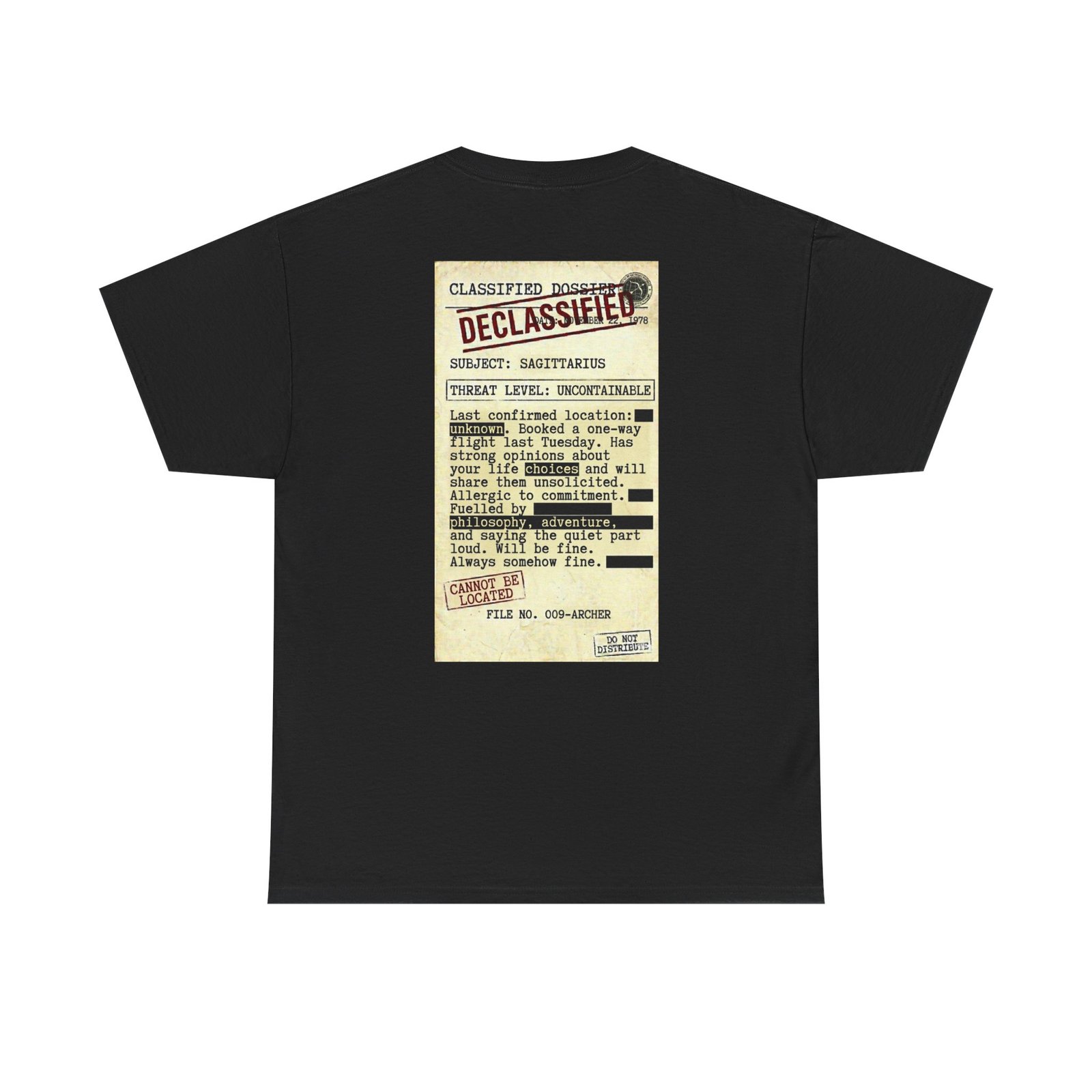 This classic cotton tee wears like a trusted companion. The relaxed, boxy cut and crew neckline feel familiar—easy to move in, easy to layer. On the back, a weathered “declassified” dossier print gives the shirt a low-key, investigative edge: like you’ve held onto a secret note from a late-night stakeout. It pairs with worn denim, a canvas jacket, or whatever you throw on when you want to feel quietly confident. Lightweight yet sturdy, the fabric ages well and keeps its shape. For people who collect stories and subtle statements, this tee reads like a chapter they can wear.